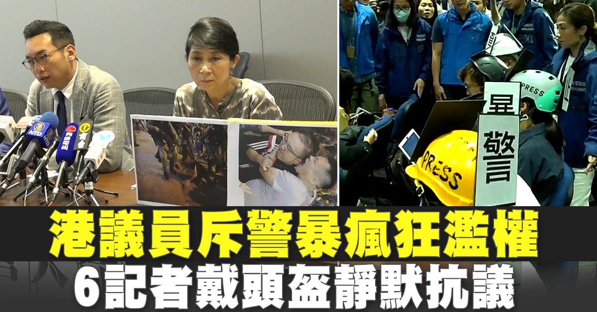 港議員斥警暴瘋狂濫權 6記者戴頭盔靜默抗議