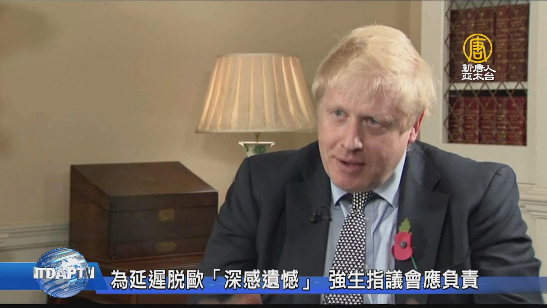 【新唐人亞太台 2019 年 11 月 04 日訊】歡迎回來,國際消息繼續關心,英國脫歐大限,延遲到明年1月底,週日(3日),一直誓言要在上月底脫歐的英國首相強生,對沒能准時脫歐「深感遺憾」,但卻指,英國議會應當為此負責。