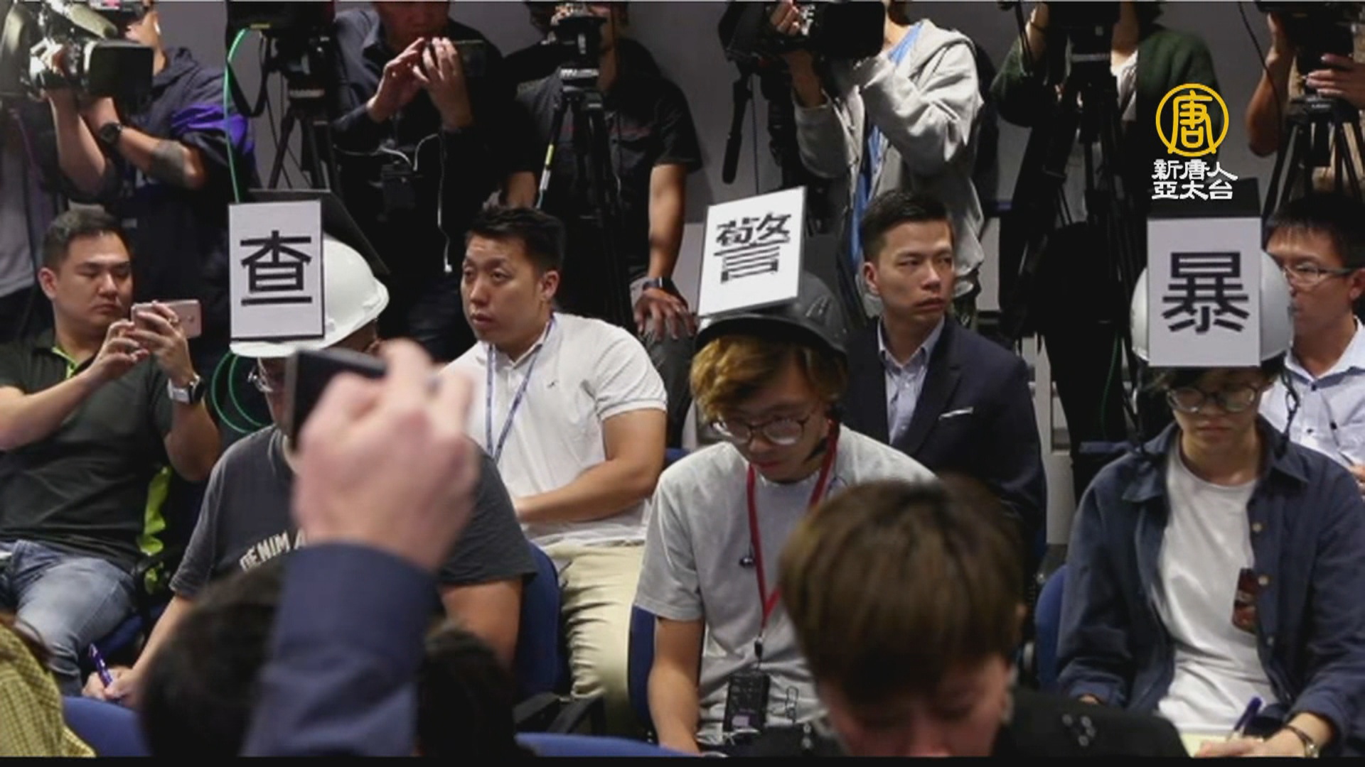 【新唐人亞太台 2019 年 11 月 05 日訊】香港警方記者會再次遭遇抗議。有六名記者星期一在記者會上,戴上頭盔抗議,要求「查警暴 止警謊」,並拒按警方要求離場,警方最終取消記者會,其後改於 Facebook 專頁直播。