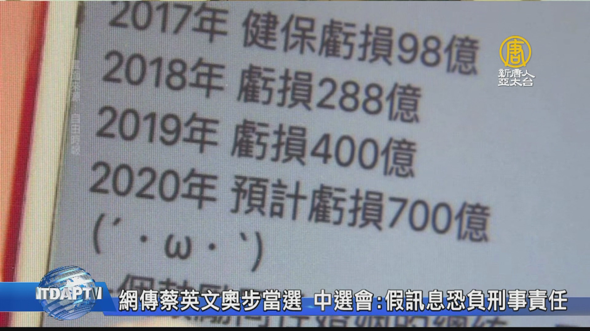 【新唐人亞太台 2019 年 11 月 06 日訊】選戰倒數,最近網路流傳消息說,明年大選蔡總統如果沒有連任成功,將提起當選無效訴訟,接著法院就會裁定,原當選人接受中共方面資助,改由第二高票當選總統。今天,中選會嚴正澄清,呼籲民眾不要轉傳、捏造,否則可能負起刑事責任。