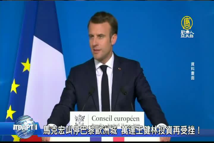 【新唐人亞太台 2019 年 11 月 09 日訊】帶您關心,中國大連萬達集團董事長王健林,在海外發展,再度受挫,據《歐洲時報》報導, 法國總統馬克宏7日宣布:停止法國零售集團歐尚(Auchan)與萬達集團合作出資30億歐元的大型商業城「歐洲城」(EuropaCity)開發計畫,計畫原訂定2027年落成,但遭到環保人士強烈反對,認為會破壞巴黎近郊僅存的大型自然土地。法國總統府則是表示,歐洲城已經過時,與人民的期望不同步,不再符合人們現在及未來的消費方式。