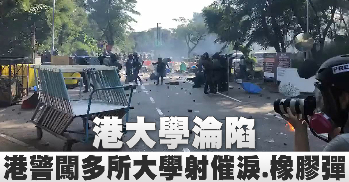 港大學淪陷 港警闖多所院校射催淚.橡膠彈