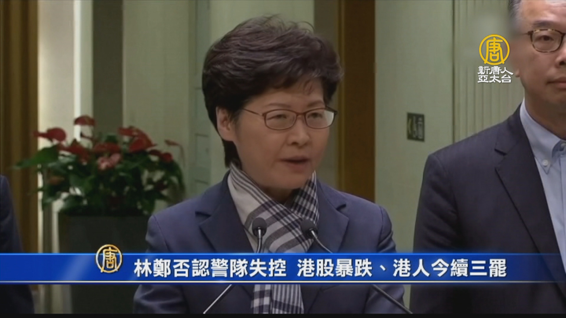 林鄭否認警隊失控 港股暴跌、港人今續三罷