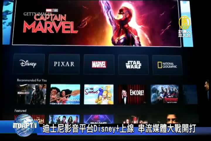 【新唐人亞太台 2019 年 11 月 12 日訊】隨著蘋果在月初推出串流平台Apple+,迪士尼影音平台Disney+也在12日上線,串流媒體正式進入戰國時代。迪士尼有豐富的內容,加上以優惠的6.99美元月費搶攻市場,對目前的串流龍頭網飛Netflix,造成極大壓力。