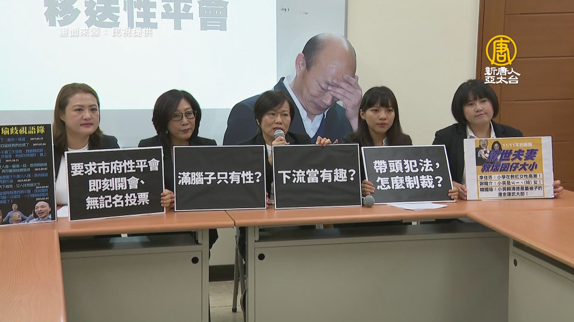 細數韓國瑜歧視語錄,連自家人也曾當場糾正,女議員同聲譴責市長韓國瑜帶頭違法,要求市府召開性平會處置。