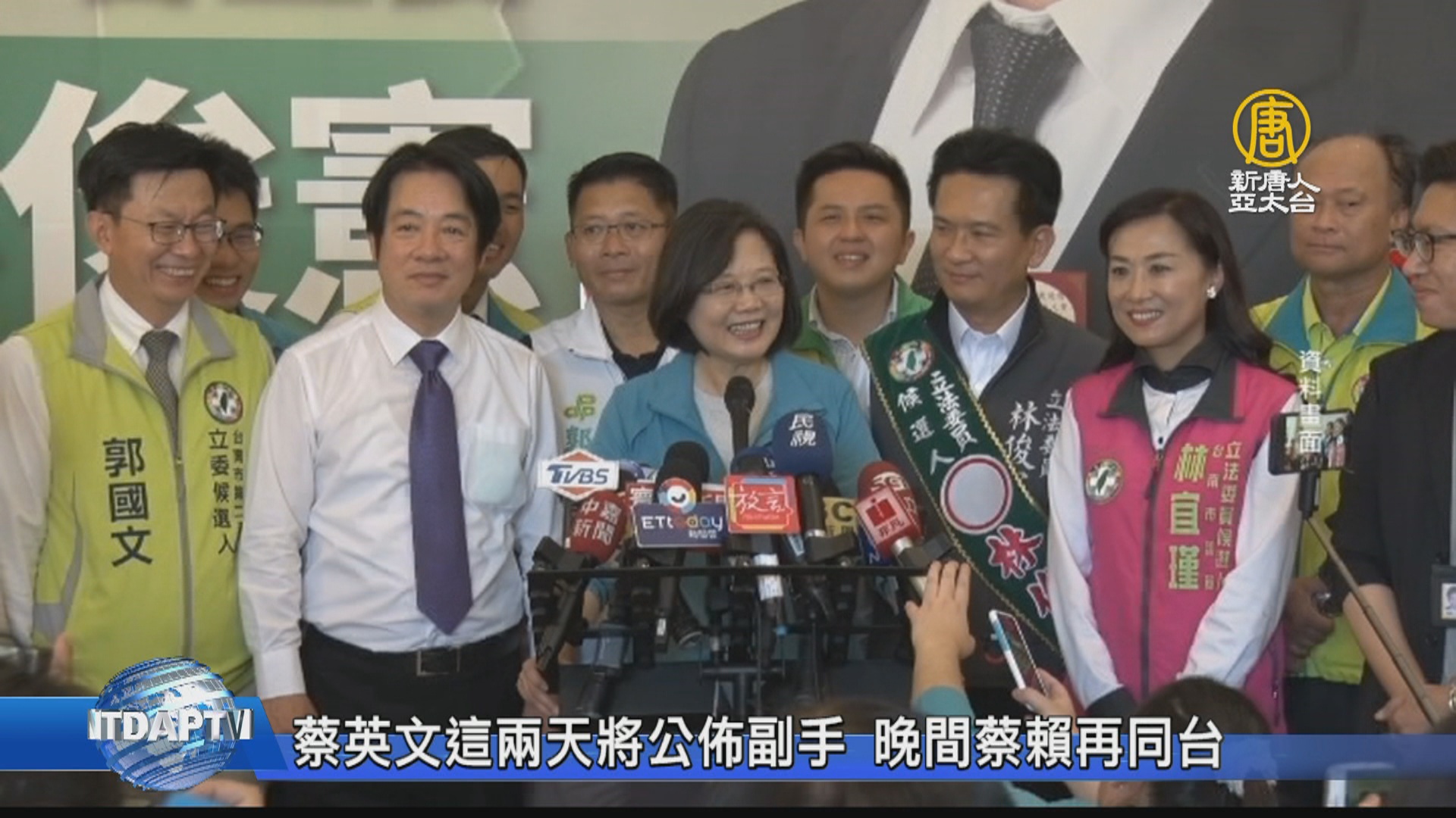 【新唐人亞太台 2019 年 11 月 15 日訊】歡迎回來,帶您看到,昨天(14日)是中選會公告領表的第一天,早上,蔡英文競辦派出發言人團隊前往領表,媒體關注,蔡英文的副手人選什麼時候可以公佈,阮昭雄表示,這兩天就會對外公開。