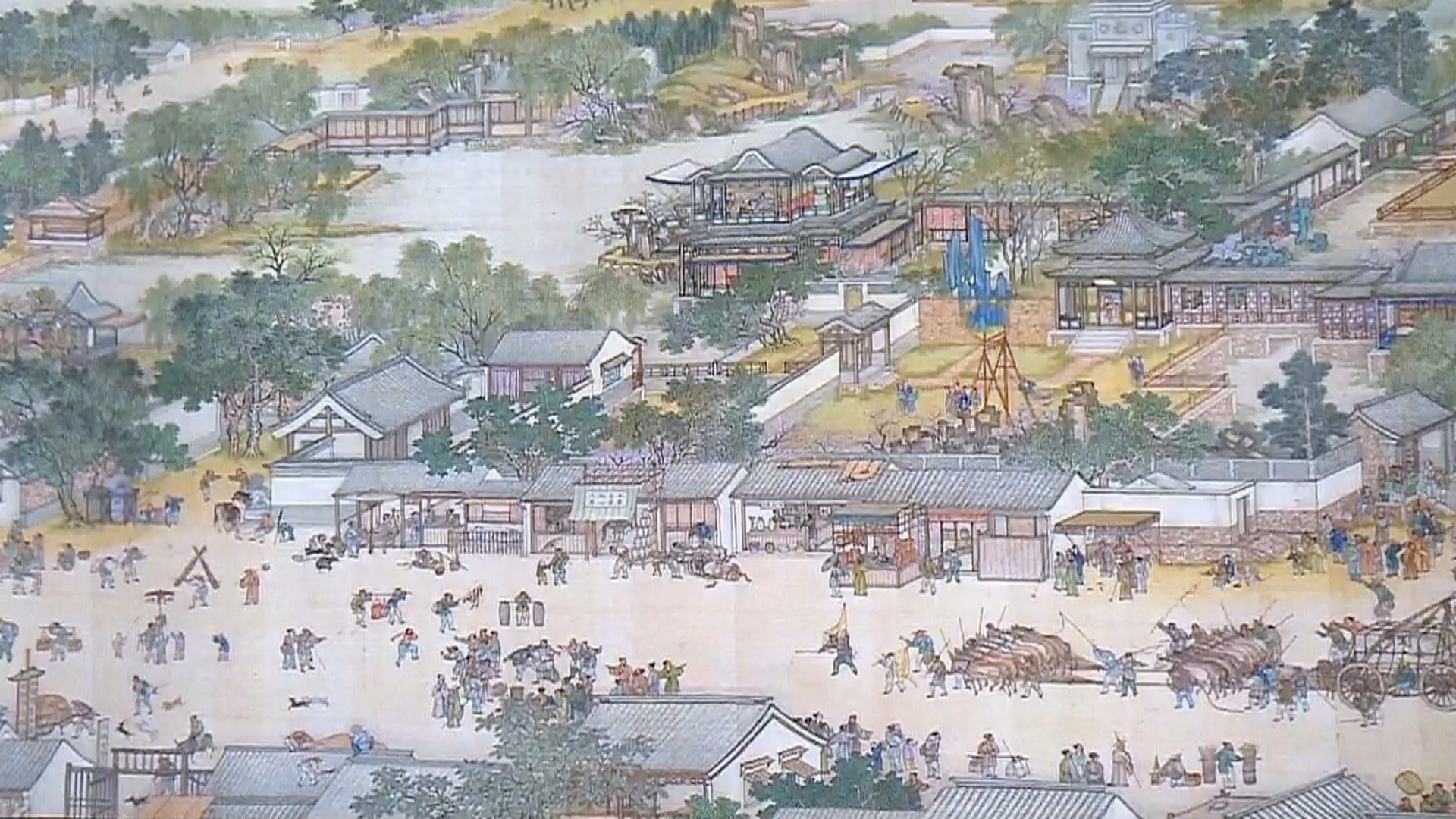 國立故宮博物院院長 吳密察:「就是說整幅畫都有(展現),但是特別的做更多的發揮的,精彩的地方,就最精彩的這一個石拱橋的這一帶,做了比較多的發揮。」
