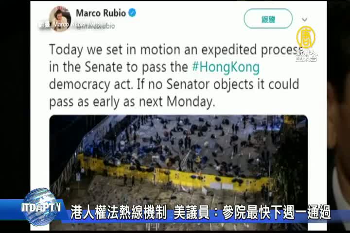 港人權法熱線機制 美議員:參院最快下週一通過