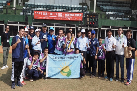 第一屆「天使盃身障棒球體驗賽」,16日在高雄市立德棒球場盛大舉行。(高雄市政府提供)