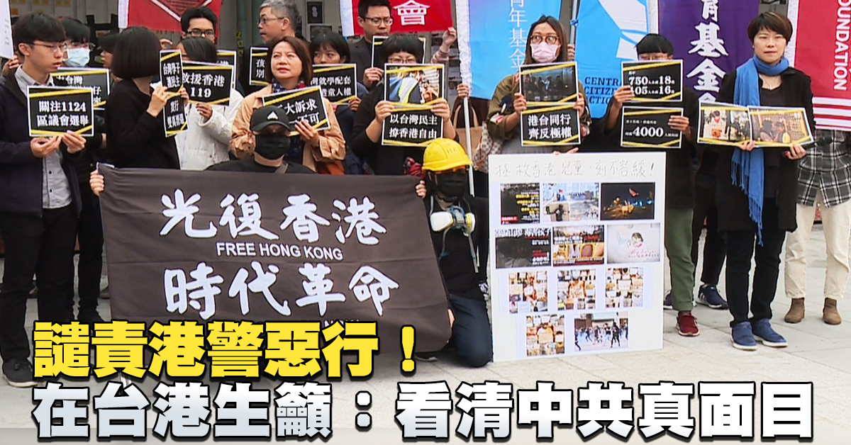 【新唐人亞太台 2019 年 11 月 19 日訊】香港情勢緊張,陸續出現香港兒童遭受到無差別的暴力對待,在國際兒童人權日前夕,台中有10多個公民、學生團體,以及在台港生齊聚,譴責港警傷害兒童以及女性的基本權利,並呼籲台灣人,要看清極權政府。