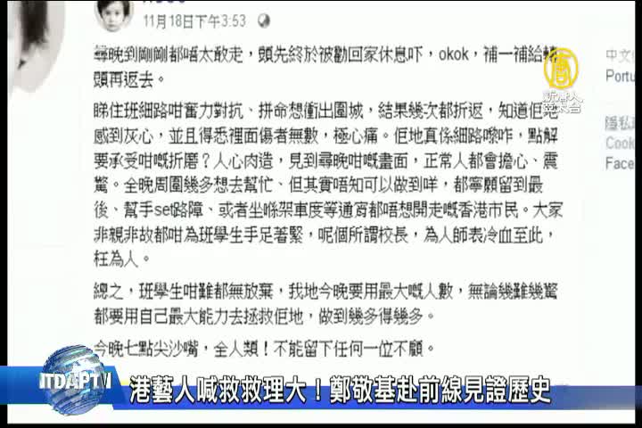 港藝人喊救救理大!鄭敬基赴前線見證歷史