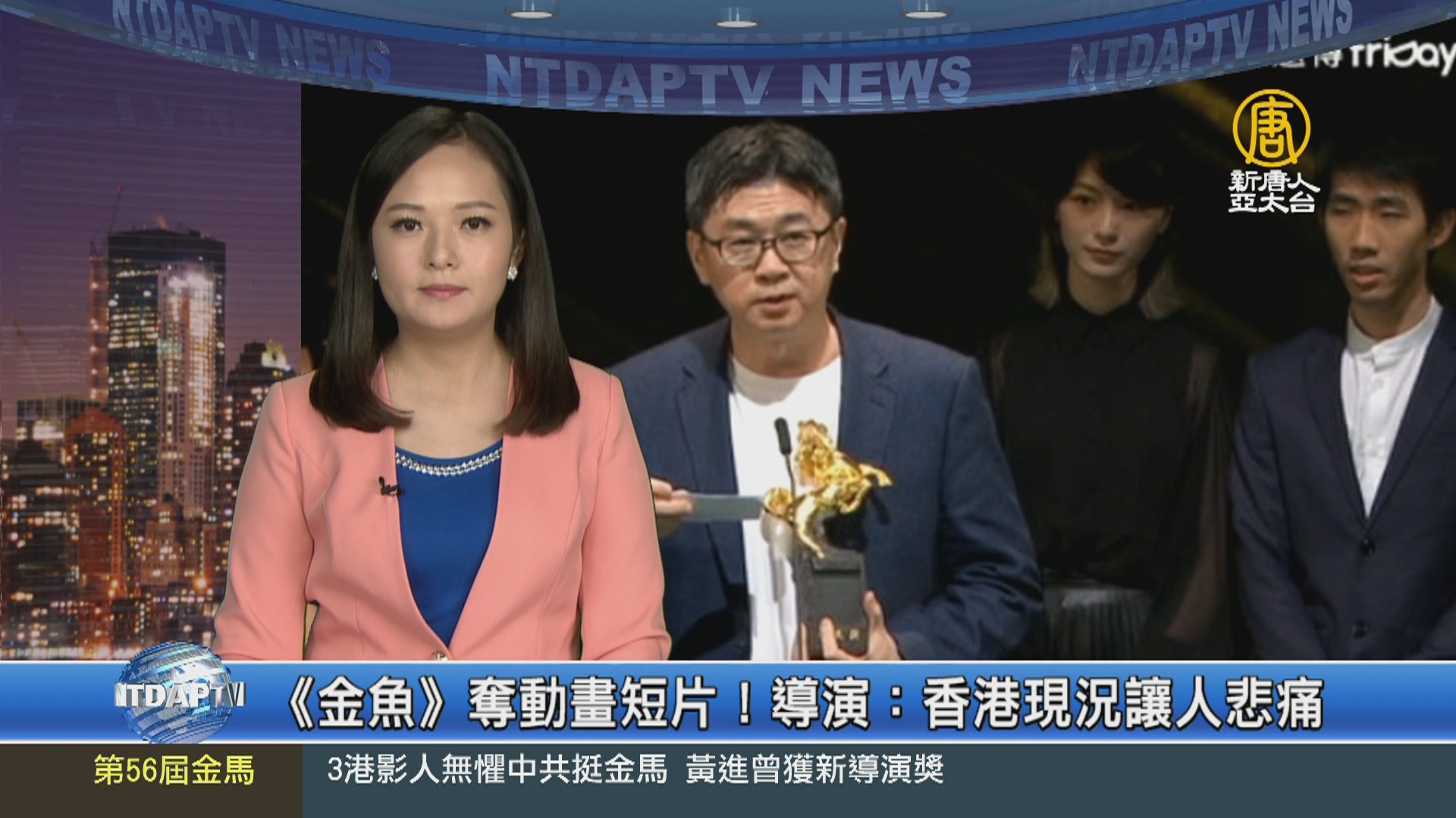 【新唐人亞太台 2019 年 11 月 23 日訊】第56屆金馬獎獎項持續頒出,今年金馬獎的「最佳動畫短片獎」由《金魚》所奪下,導演王登鈺在致詞時,特別談到了近期的香港反送中運動,他表示,現實超過了動畫的想像,香港現況讓人非常悲痛。導演王登鈺從事藝術創作20多年,他的作品《金魚》以奇幻故事為主軸,改編於自身的同名漫畫,片中內容描述著社會底層的人民,不斷遭受剝削的故事,引發不少人共鳴,而這部作品在日前的台中國際動畫獎中,拿下首獎。