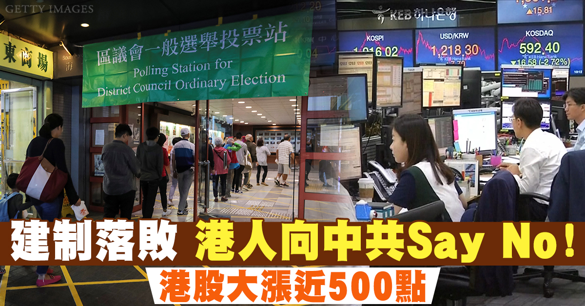 建制落敗 港人向中共Say No!港股大漲近500點