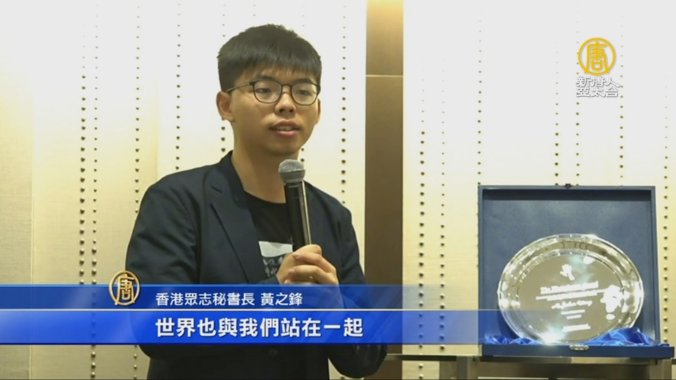 【新唐人亞太台 2019 年 11 月 25 日訊】先前,香港眾志秘書長黃之鋒,獲頒英國「西敏寺人權獎」,但遭到香港法院判決禁止出境前往英國領獎。而英國上議院議員艾爾頓勳爵,藉著到香港監察選舉的機會,親自把獎項帶到香港,並在今天頒給黃之鋒。黃之鋒表示,這座獎項證明了世界與港人同在。