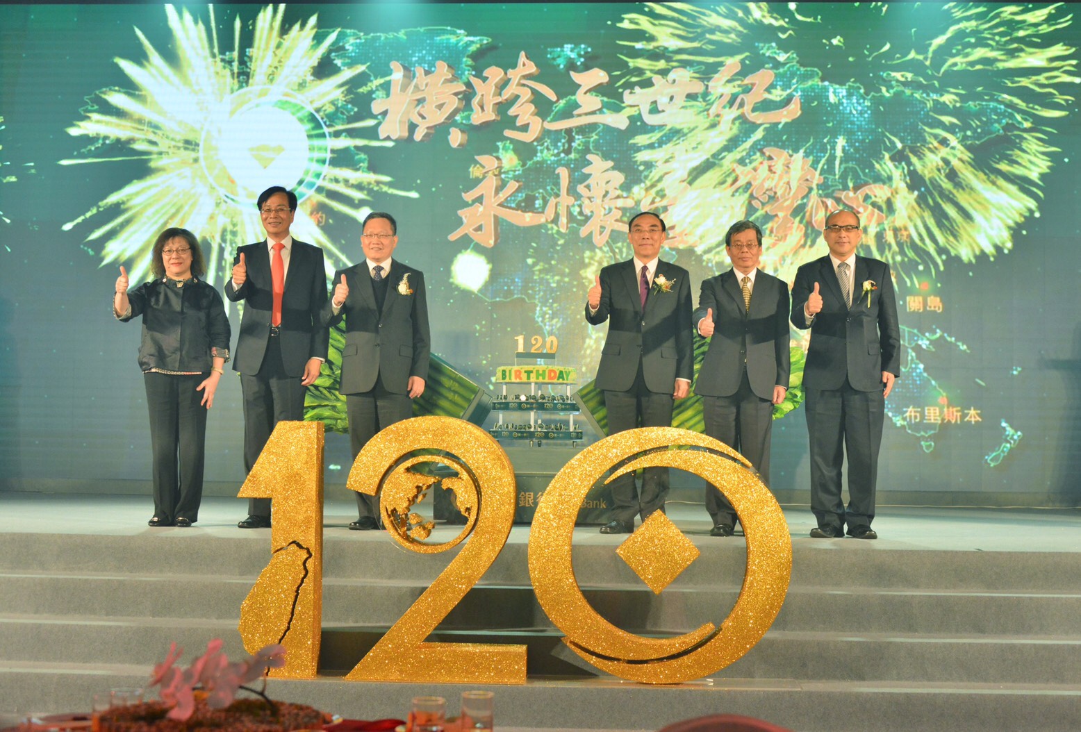 【新唐人亞太台 2019 年 11 月 26 日訊】歡聲喜悅中,以遍布全臺的「竹」為主題,取自生機勃勃的生命力,還有竹謙遜和品格為意象,傳達「綠色金融‧第一品牌」理念,第一銀行慶祝120週年行慶,現場冠蓋雲集,包含政府官員、金融同業、第一銀行歷任董事長廖燦昌、總經理鄭美玲與重要貴賓等,8百位金融圈人士雲集!