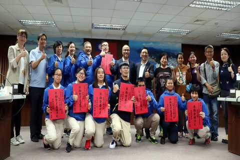 【新唐人亞太台 2019 年 11 月 27 日訊】高雄市參加今年2019年夏季世界特殊奧林匹克運動會,與來自170個國家、超過1萬名選手競逐,13名選手表現優秀,勇奪11金、7銀、3銅佳績;其中輪滑競速、融合滾球與田徑項目就各自拿下3金,並奪得融合籃球團體賽金牌,葉匡時副市長於 26日市政會頒獎表揚,嘉勉選手們為國爭光。