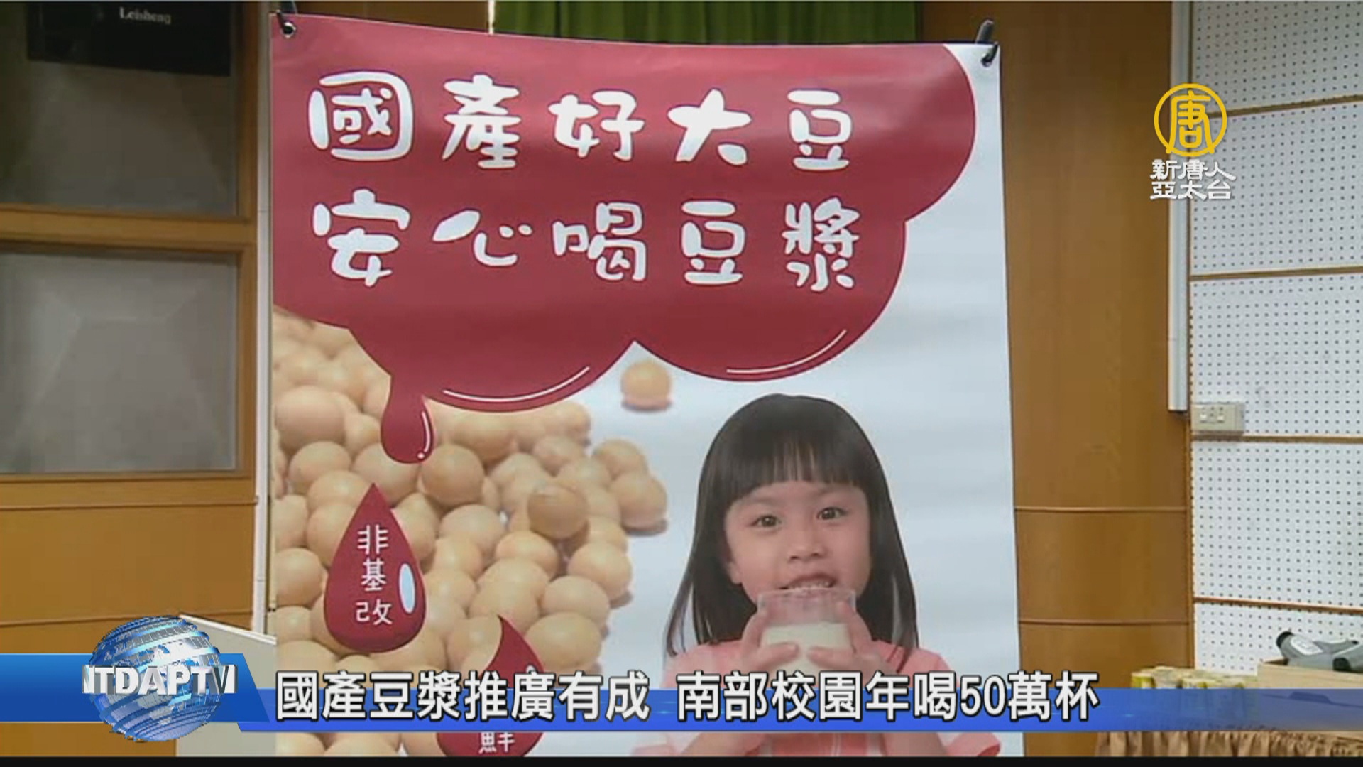 【新唐人亞太台 2019 年 11 月 27 日訊】為了促進非基改、新鮮又營養的國產豆漿進入學校營養午餐,行政院農業委員會農糧署今天(27日)舉辦國產豆漿校園有成記者會,邀請相關國中小校長、農友代表、國產豆漿生產業者,分享年度推廣成果。