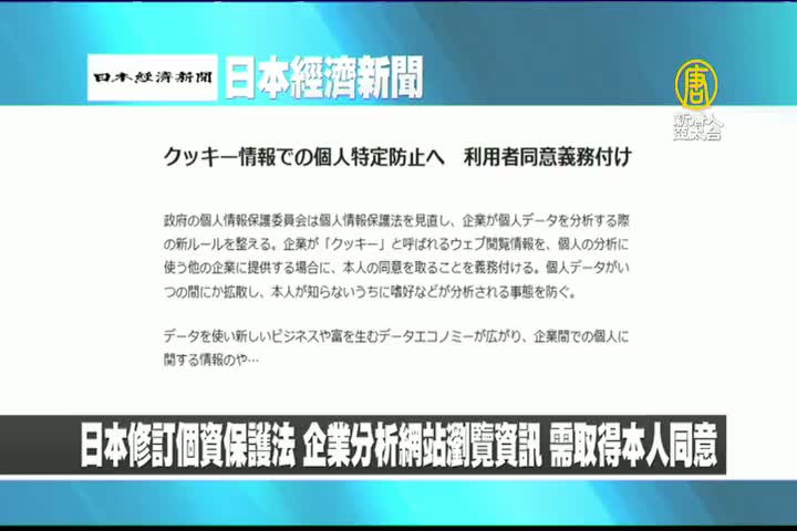【新唐人亞太台 2019 年 11 月 28 日訊】來看到日本經濟新聞報導:日本修訂個資保護法,企業分析網站瀏覽資訊,需取得本人同意。