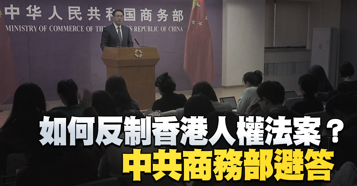 【新唐人亞太台 2019 年 11 月 28 日訊】美國總統川普,簽署兩項關於香港的法案之後,包括港府、中共外交部、港澳辦還有中聯辦都接連發表聲明,跳腳譴責,但外界關注,是否影響美中正在商談的貿易協議。中共商務部舉行記者會,發言人高峰表示,關於涉及香港的法案,有關部門已表明中方立場,至於美中經貿磋商,若有進一步訊息會即時發布,但沒有回應關於反制措施的提問。