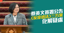 蔡英文簽署公告《反滲透法》三方案化解疑慮