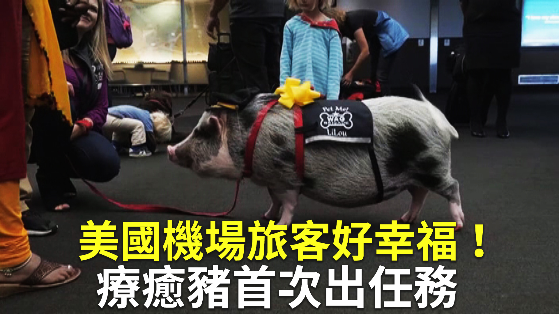【新唐人亞太台 2019 年 11 月 29 日訊】為了幫助遊客減緩旅行焦慮,許多機場推出療癒犬的服務。但在美國舊金山機場卻有一隻迷你豬加入療癒動物的團隊,也是世界上第一隻在機場出任務的療癒豬。