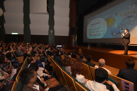 日本嬌生集團總監陳志瑜以「生技產業與醫療保健的全球視野-產官學合作創新經濟」為主題做專題演講。(彰化縣企業經營研究協會提供)