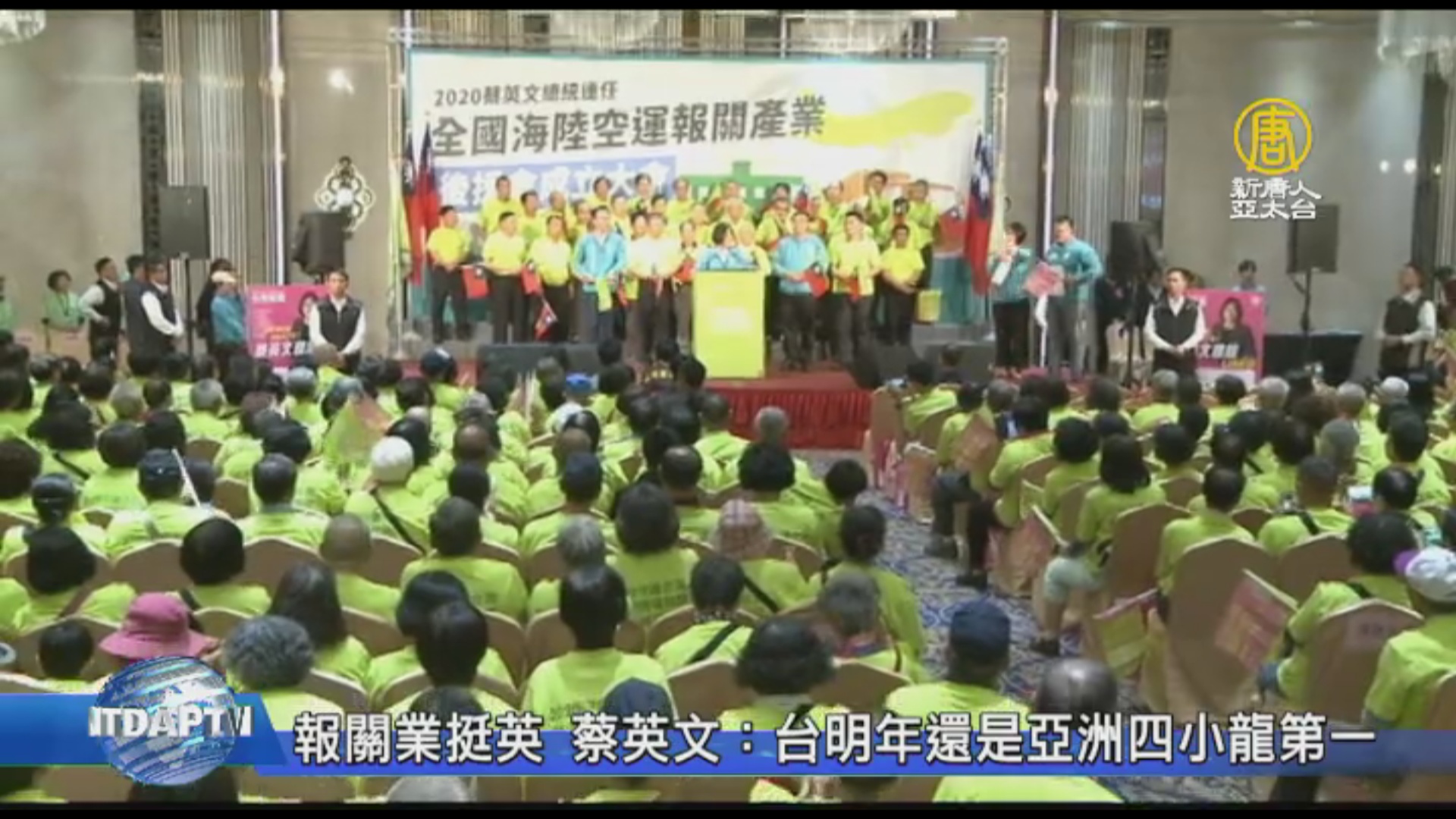 【新唐人亞太台 2019 年 11 月 30 日訊】選戰倒數四十二天,民進黨總統候選人蔡英文今天出席報關產業後援會,總統說,再給她一個四年,經濟會更亮眼、照顧人民更周到,也要台灣人,投票展現保護台灣決心。