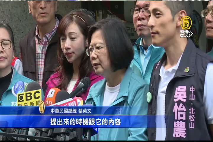 【新唐人亞太台 2019 年 11 月 30 日訊】2020大選競爭激列,民進黨為了攻下台北市第3選區,總統蔡英文今天再度與立委參選人吳怡農掃街,對於國民黨提出的《反併吞中華民國法》草案反制民進黨的《反滲透法》草案,總統蔡英文今天受訪時表示,感覺以後連「台灣」都不能講,政治操作意圖非常明顯。