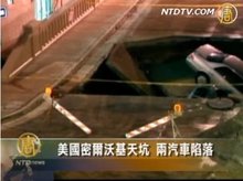 2011-03-14 05:40:11天坑出現之前 能夠感到地面在顫動 ,美國密爾沃基天坑 兩汽車陷落
