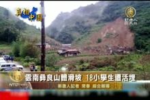 2012-10-05 21:30:57來關心中國新聞 ,正當中國各地民眾正在放十一長假的時候,雲南省彝良縣10月4號發生了土石流,瞬間將附近小學的教學樓及農戶掩埋,造成19人死亡,其中,有18人是當地的小學生,令民眾相當震驚與惋惜。