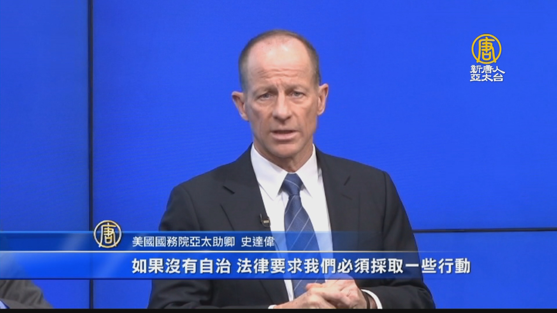 美國國務院亞太助卿 史達偉 ﹕「香港自治正被擠壓﹐這個新法案通過﹐我們將繼續評估香港的自治狀況﹐如果沒有自治﹐法律要求我們必須採取一些行動﹐將影響其貿易區(地位)和其它。」