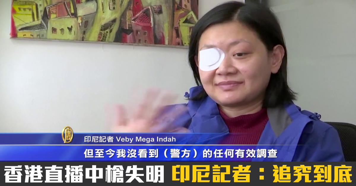印尼記者 Veby Mega Indah:「幾秒鐘後,我聽到砰的一聲,看到樓梯處有煙霧,隨後我看到子彈朝我右眼飛來。」