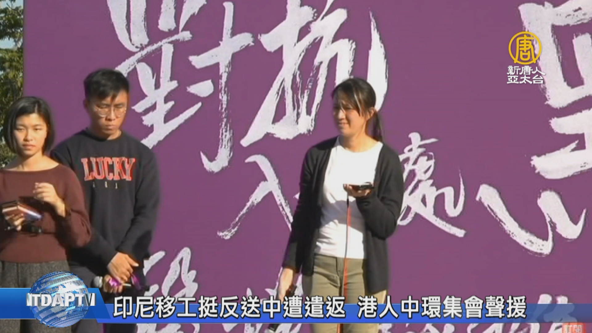 【新唐人亞太台 2019 年 12 月 07 日訊】好的,持續關心香港,一名印尼移工作家Yuli,在香港工作了10年,不過疑似因為支持香港反送中而遭到遣返,港府這個禮拜以她的工作簽證過期為由,將她遣送出境,拒絕她申請延長工作簽。而今天在香港中環的愛丁堡廣場,舉行「聲援被逐印傭作家」的集會,在集會期間,Yuli更透過電話連線向香港人說感謝。