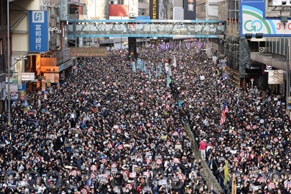 2019年12月8日,香港民陣發起「國際人權日」集會大遊行。遊行隊伍在灣仔軒尼詩道。(宋碧龍/大紀元)