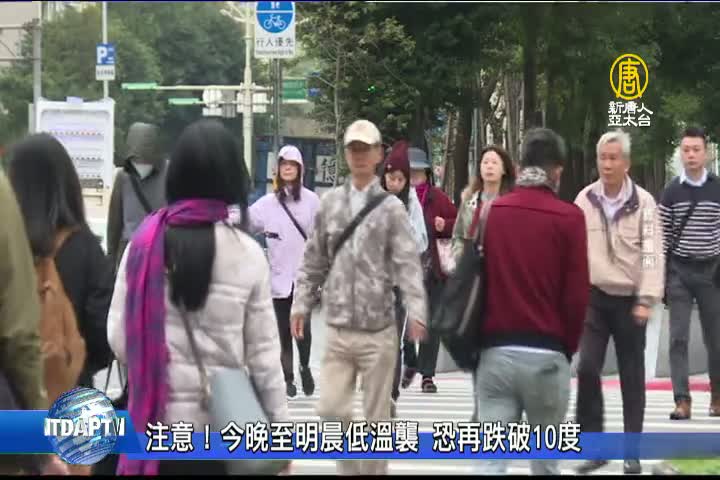【新唐人亞太台 2019 年 12 月 09 日訊】新聞一開始,先提醒觀眾朋友,今天晚上可能再度出現十度以下低溫!受到輻射冷卻影響,氣象局持續發布低溫特報,包含新竹縣、苗栗縣、雲林縣、南投縣以及花蓮縣,五個縣市,今天晚上到明天清晨,氣溫可能低於10度以下,提醒您要做好禦寒措施,使用瓦斯熱水器,及電暖器具,也要注意室內通風及用電安全。至於明天白天氣溫,氣象局預測會是舒適至溫暖,出門也要注意日夜溫差,早晚別忘了多帶一件外套。