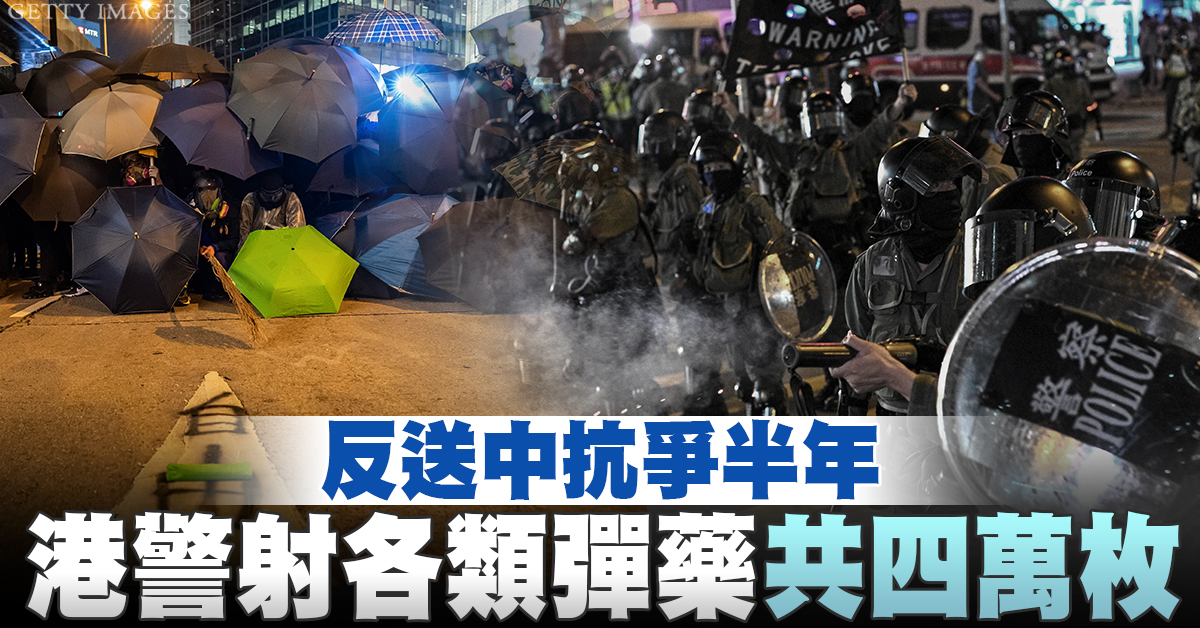 反送中抗爭半年 港警射各類彈藥共四萬枚