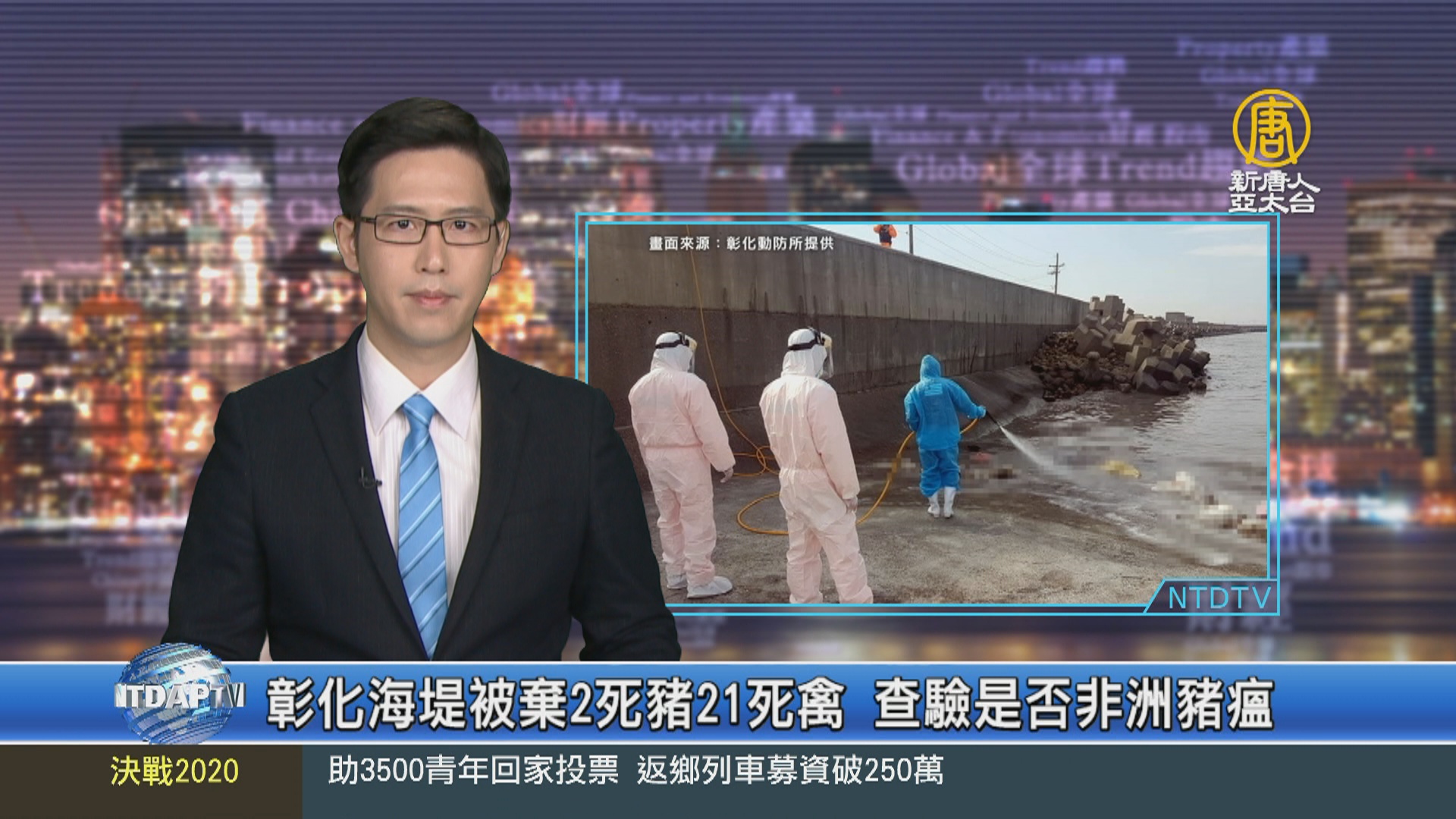 【新唐人亞太台 2019 年 12 月 09 日訊】彰化縣大城海域,又傳有2頭死豬、21隻死雞死鵝被棄置。彰縣動物防疫所派員消毒、採集檢體檢驗,釐清是否感染非洲豬瘟病毒,也和環保局、警方聯手追查死亡牲畜來源。初步研判,是從上游惡意丟棄。環保局長說,任意丟棄死亡屠體違犯刑法,請民眾踴躍舉發。
