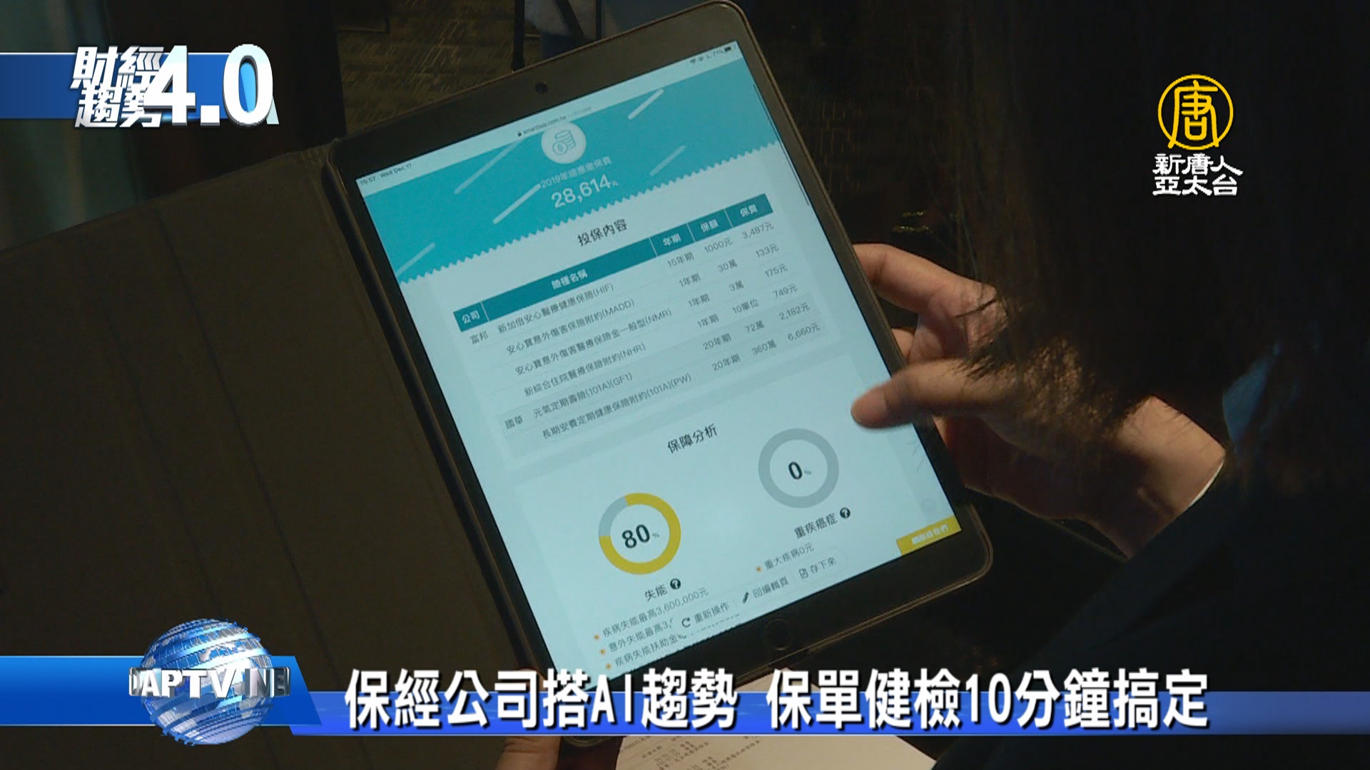 【新唐人亞太台 2019 年 12 月 14 日訊】觀眾朋友知道保單健檢是什麼嗎?其實就是將您買過的各家保單,統一整理後,檢視保障金額是否足夠以及保障範圍是否符合需求。這些動作可以由保險業務員來協助您。而現在有保險經紀人公司攜手人工智慧保險科技公司,打造一款系統,不僅縮短業務員進行保單健檢的時程,透明度相比以往也更高,未來還將提供給一般消費者使用。