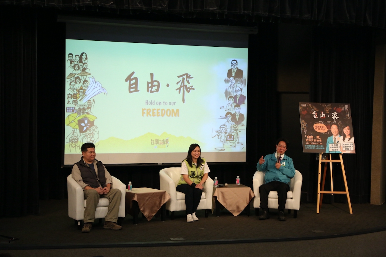導演李惠仁執導紀錄片《自由.飛》,用鏡頭記錄香港青年參與反送中,影片穿插台灣政治受難家屬訪談,呼應港台兩地不同時空爭取民主的經歷。民進黨副總統候選人賴清德與黨籍立委參選人謝佩芬同台,分享觀後心得。