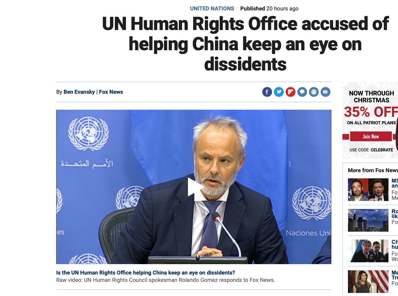 美媒:聯合國人權機構 被控續泄露名單信息給中共(截圖/FOX官網)