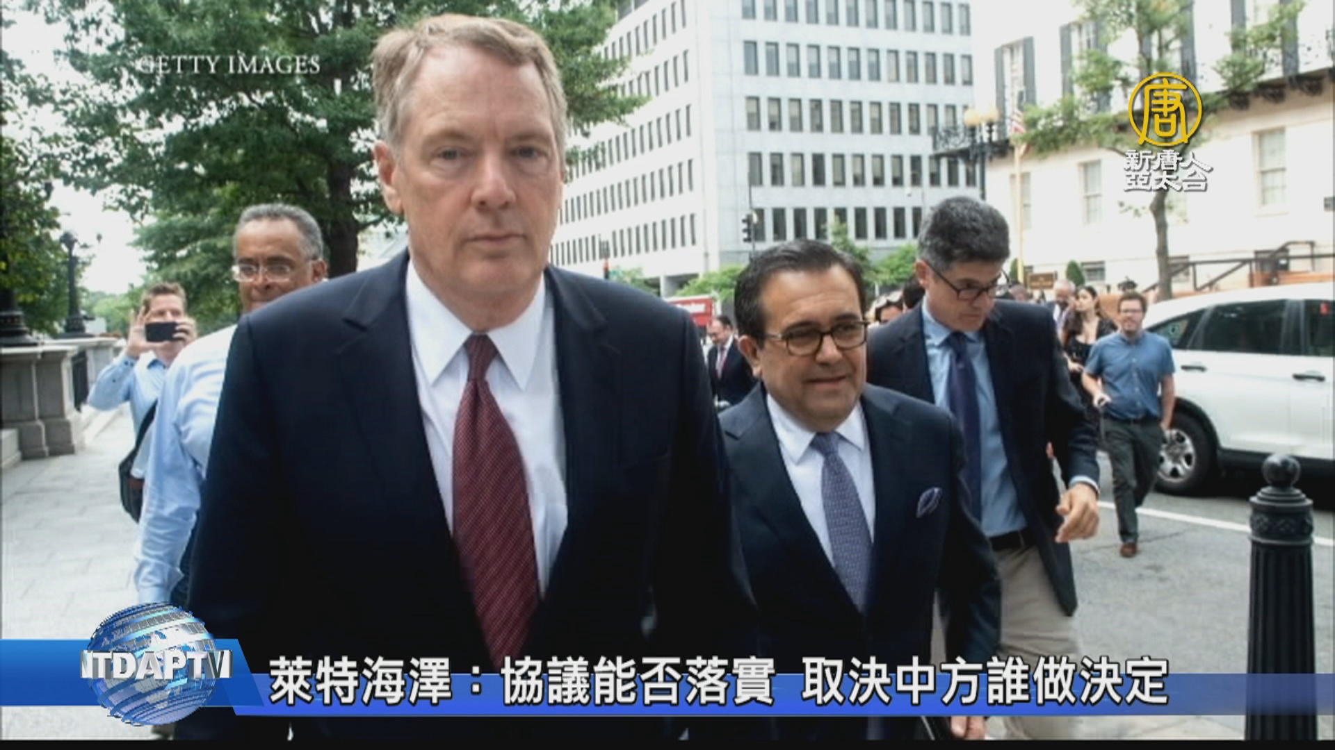 【新唐人亞太台 2019 年 12 月 16 日訊】在一年多的貿易戰之後,美中兩國終於在上週五達成了第一階段的貿易協議。美國貿易代表萊特海澤15號接受媒體採訪時坦言,第一階段貿易協議無法解決所有問題。並說,協議能否落實,取決於中方由強硬派還是改革派來做決定。