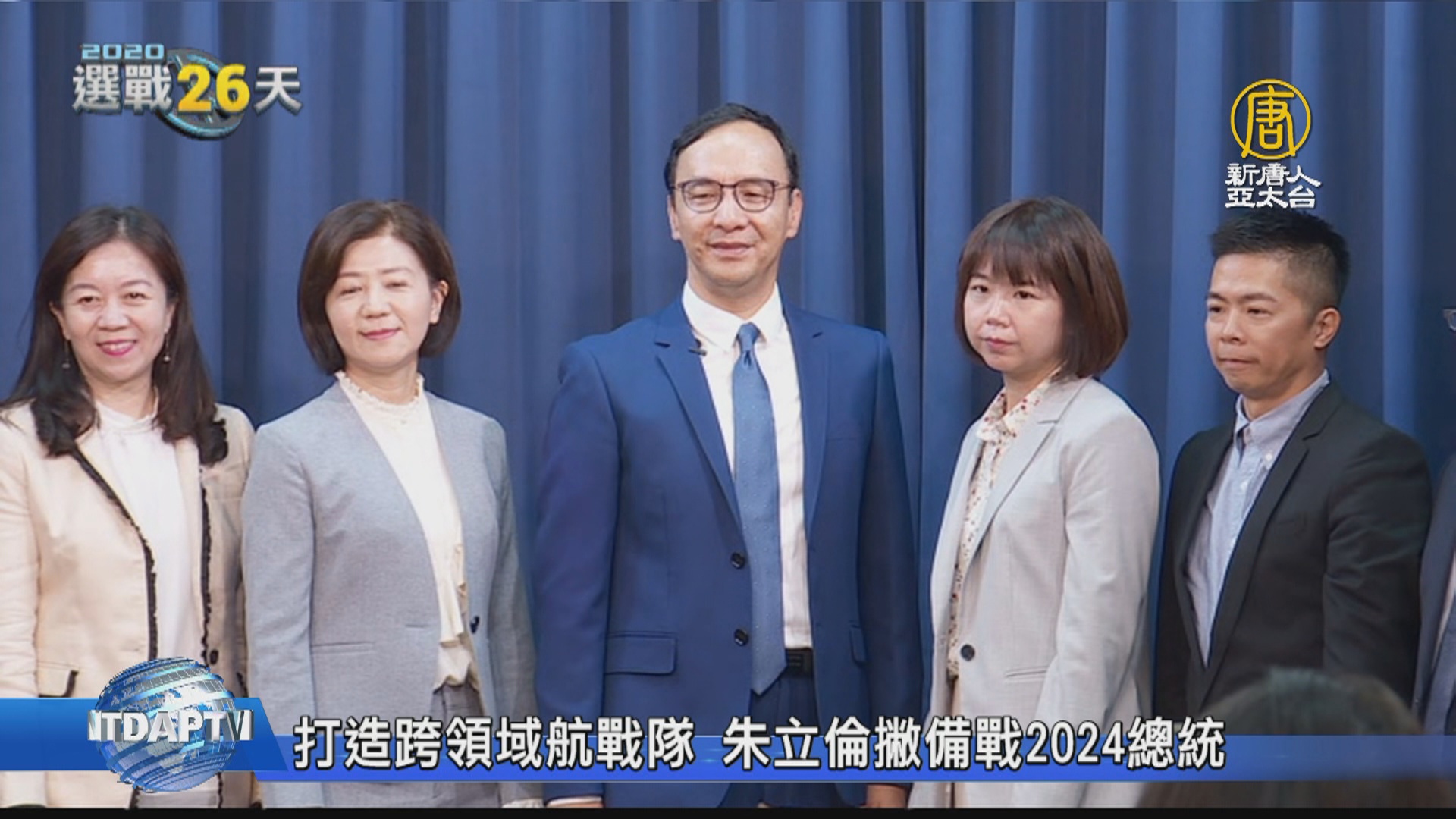 【新唐人亞太台 2019 年 12 月 16 日訊】好的,明年總統大選倒數不到1個月,前新北市長朱立倫日前接下了韓國瑜全國競選總部的主委之後,先是成立「新世代戰鬥團」,今天(16日)更邀集10位跨領域專家,打造「跨域領航戰隊」,要來搶攻中間選民與年輕族群選票。
