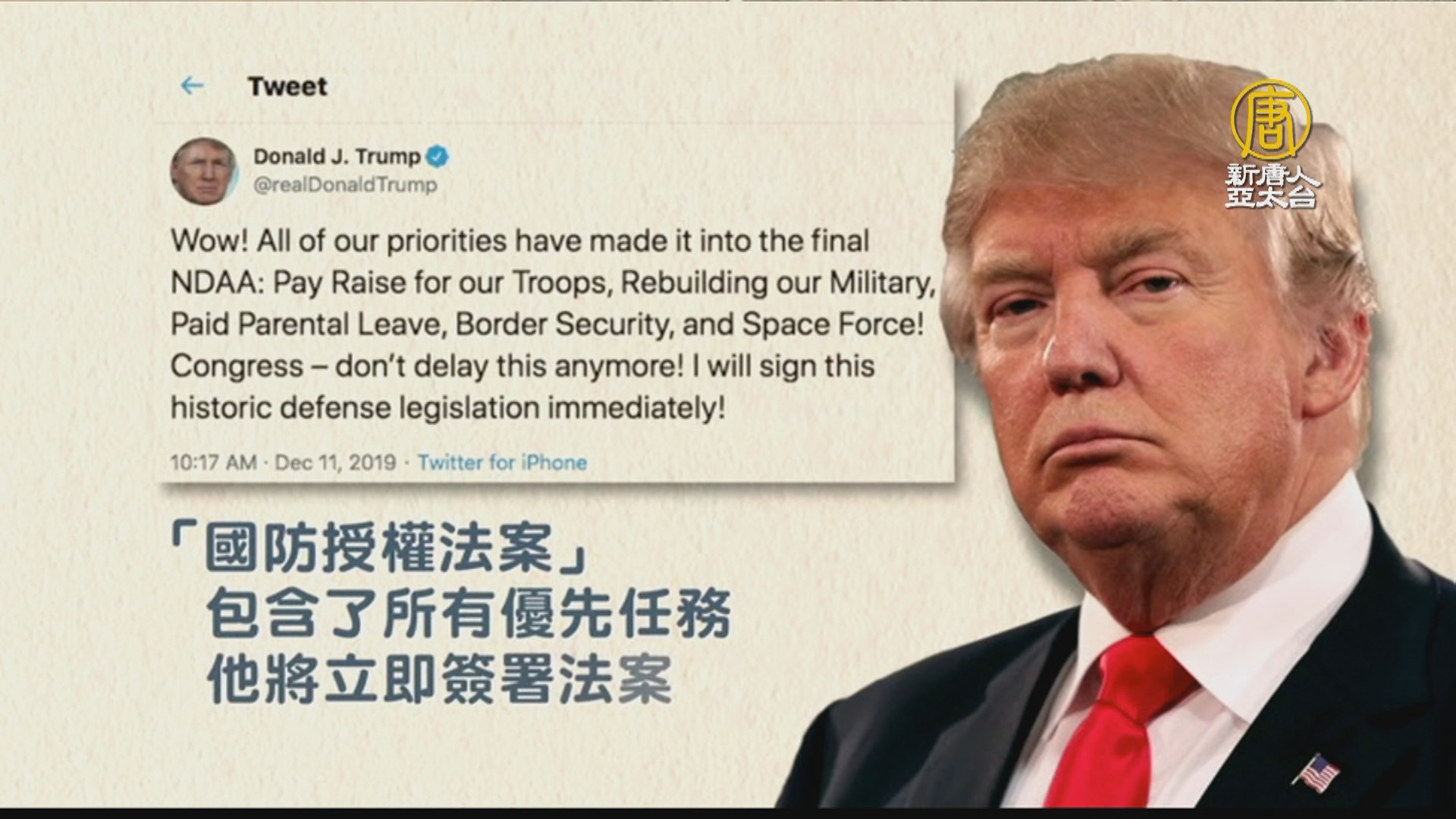 川普上週在推特上表示,「國防授權法案」包含了所有優先任務,他將立即簽署法案。