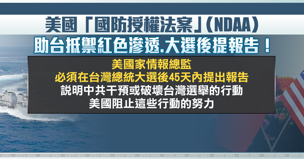 美國防授權法 助台抵禦紅色滲透.大選後提報告!