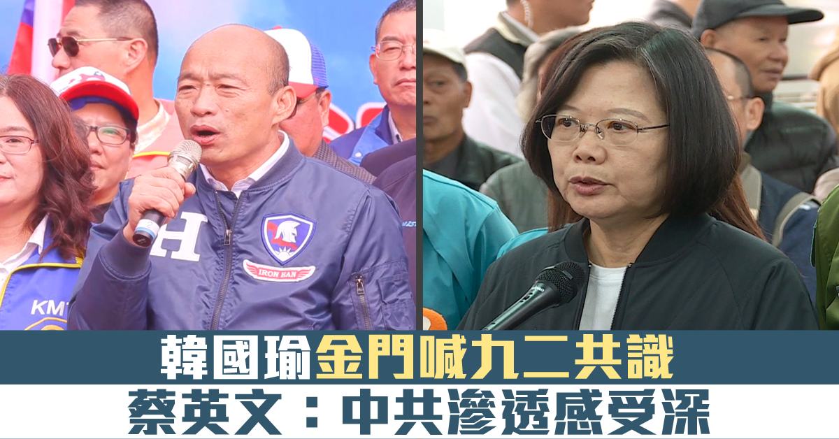 韓國瑜金門喊九二共識 蔡英文:中共滲透感受深