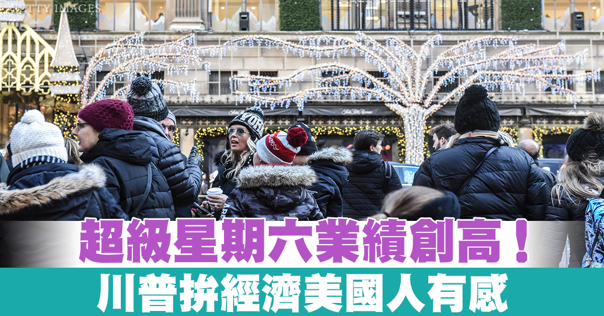 CBS 記者 Adriana Diaz:「將近一半的美國人去購物,就在上週六,現在被稱為超級星期六,是聖誕節和光明節前的最後一個大型購物日。他們消費了344億美元,比黑色星期五高出10%。」美國經濟成長一枝獨秀,荷包滿滿的消費者,在超級星期六(Super Saturday)大方購物,12月21日當天,全美零售總額達到344億美元,創下史上最大單日交易金額。