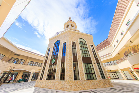 星巴克麗寶鐘樓門市為全台首座以歐式鐘樓教堂式外型的門市。(星巴克提供)