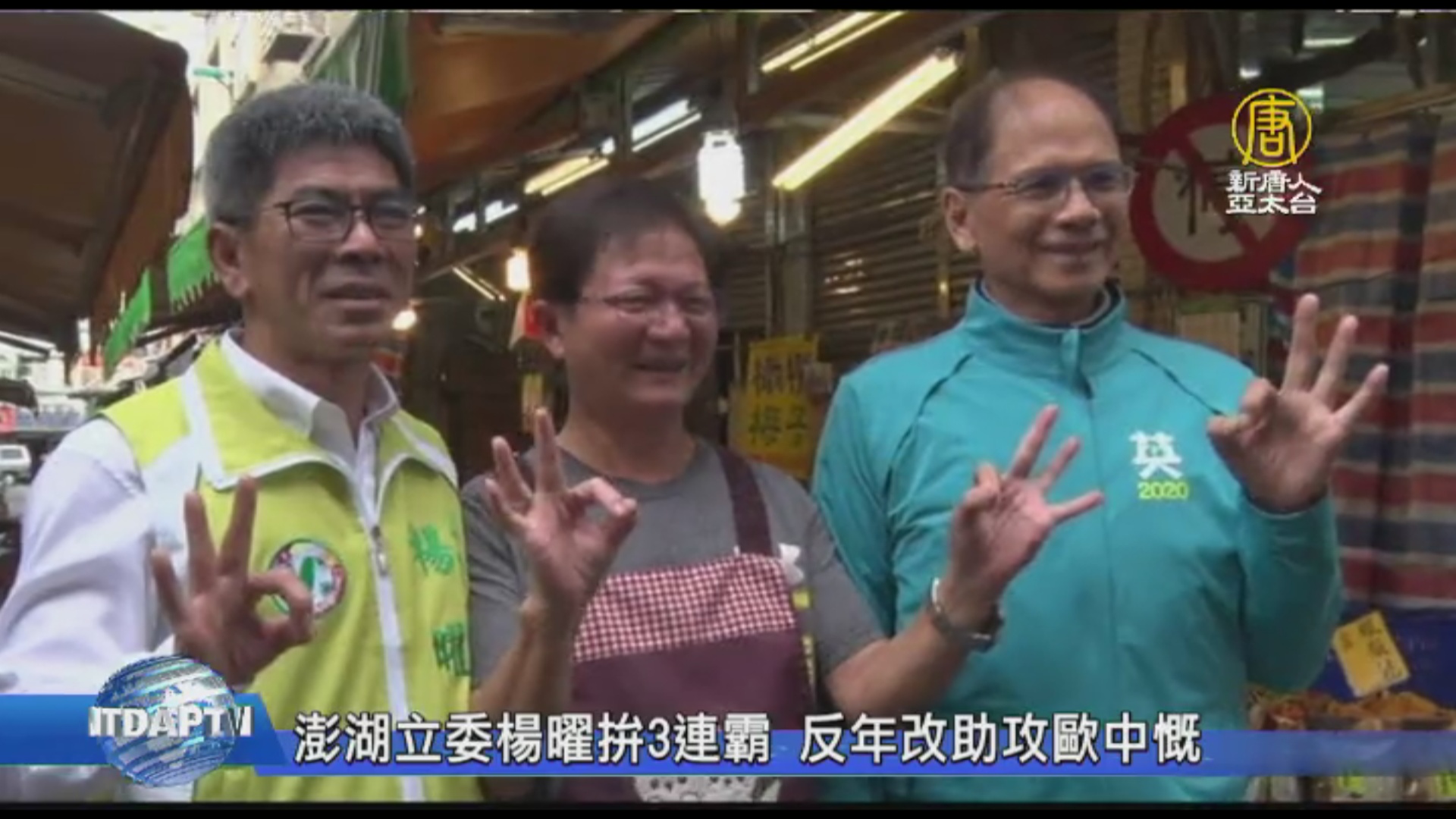 【新唐人亞太台 2019 年 12 月 27 日訊】澎湖縣立委選局呈現三搶一,但外界普遍認為,將是由國民兩黨候選人爭奪的拉鋸戰。尋求三連霸的民進黨候選人楊曜,在反軍公教年改衝擊下,遭遇國民黨資深議員歐中慨強力挑戰,最後能否突圍出線,備受關注。