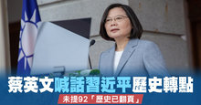 蔡英文喊話習近平歷史轉點 未提92「歷史已翻頁」