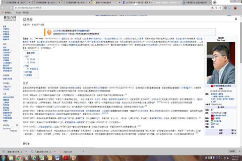 民進黨海區立委蔡易餘個人維基百科的資訊頁面。(嘉義縣警察局提供)